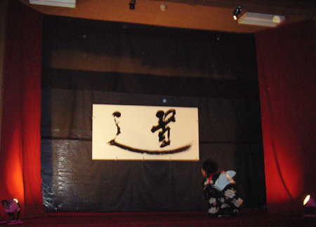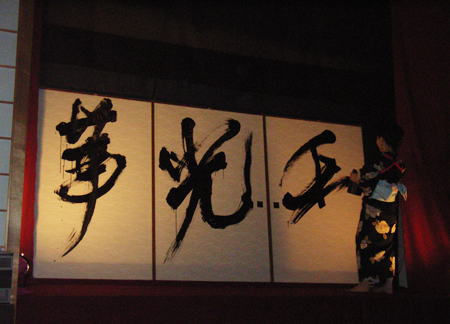 女流書家・高岡亜衣さんによる書道パフォーマンス。